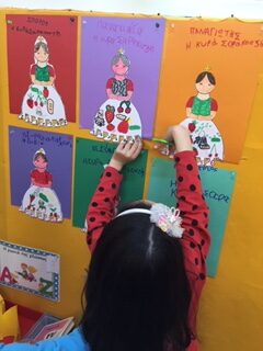 Με έμφαση στην κίνηση, τη μουσική και το ρυθμό, κινούμασταν ελεύθερα όταν υπήρχε μουσική και όταν σταματούσε αντιστοιχίζαμε την καρτέλα με το όνομα μας με το αρχικό γράμμα του ονόματος μας.