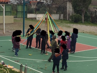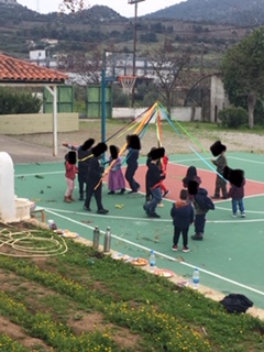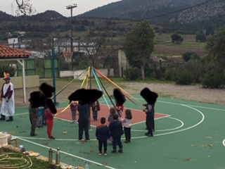 Οι μαθητές του δημοτικού σχολείου μας προσκάλεσαν στο αποκριάτικο πάρτυ τους, όπου παίξαμε παιχνίδια μαζί τους ακολουθώντας τις οδηγίες που μας έδιναν, χορέψαμε το παραδοσιακό γαϊτανάκι μαζί τους και γευτήκαμε λιχουδιές που προετοιμάσαμε μαζί!!! Στο τέλος του πάρτυ μας πρότειναν να παρακολουθήσουμε μαζί μια παιδική ταινία που μιλάει για τη διαφορετικότητα.