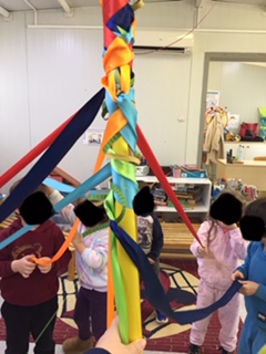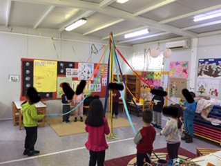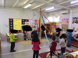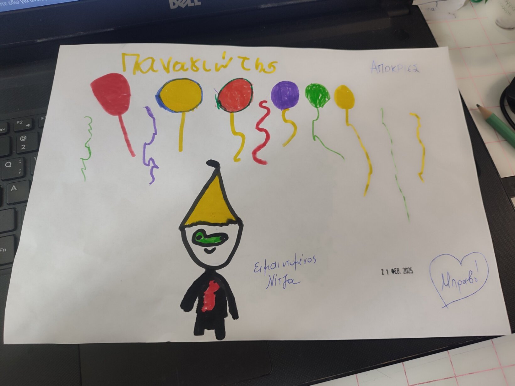Μπήκαμε σιγά σιγά στους ρυθμούς του καρναβαλιού!!! Φτιάξαμε τις μασκούλες μας, κλόουν με την παλάμη μας, μιλήσαμε για το παραδοσιακό έθιμο ” Το Γαϊτανάκι” που ήρθε στην Ελλάδα από τον Πόντο και τη Μ. Ασία, έχει ένα ξύλινο κοντάρι με 12 χρωματιστές κορδέλες, όπου συμβολίζουν τους 12 μήνες του χρόνου και οι χορευτές χορεύουν μεταμφιεσμένοι και αντικριστά, μέχρι όλες οι κορδέλες να τυλιχτούν στο κοντάρι, το ζωγραφίσαμε και χορέψαμε και εμείς με το δικό μας Γαϊτανάκι!!