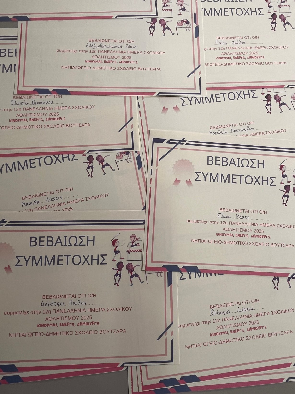 Το Νηπιαγωγείο και το Δημοτικό Σχολείο Βουτσαρά συμμετείχαν στον εορτασμό της 12ης Πανελλήνιας Ημέρας Σχολικού Αθλητισμού.Οι προπονητές της Ακαδημίας ποδοσφαίρου ΘΥΕΛΛΑ ΕΛΕΟΥΣΑΣ επισκέφτηκαν το σχολείο μας και μας δίδαξαν το άθλημα του ποδοσφαίρου.