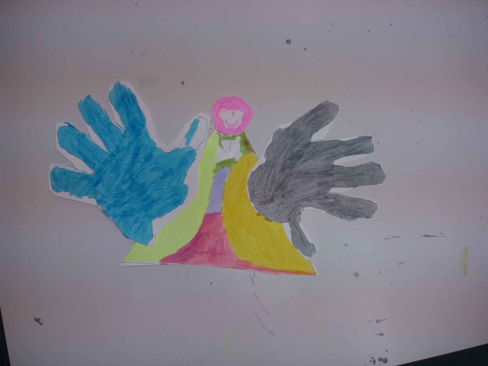 Αφού παρακολουθήσαμε το παραμύθι συζητήσαμε πόσα χρήσιμα, αλλά και διασκεδαστικά πράγματα μπορούμε να κάνουμε με τα χεράκια μας! Τονίσαμε ότι όταν τα χεράκια μας δίνουν βοήθεια και αγάπη κάνουμε ευτυχισμένους όχι μόνο εμάς, αλλά και τους γύρω μας. Τέλος, χωριστήκαμε σε δύο ομάδες και υπογράψαμε το συμβόλαιό μας ότι “τα χεράκια μας δεν θα χτυπάνε, αλλά θα αγαπάνε”, φτιάχνοντας από μία τεράστια καρδιά που πάνω της έχει τα αποτυπώματα των δικών μας χεριών!