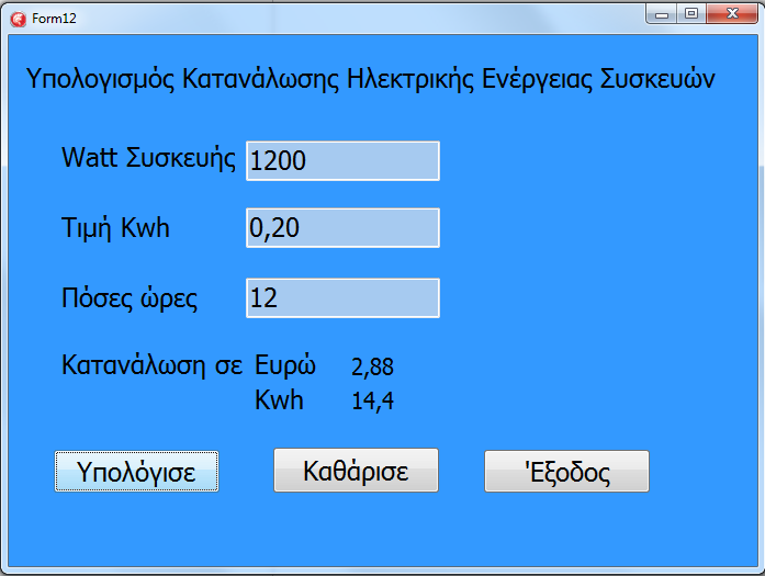 ΕΦΑΡΜΟΓΗ ΥΠΟΛΟΓΙΣΜΟΥ ΚΑΤΑΝΑΛΩΣΗΣ ΗΛΕΚΤΡΙΚΩΝ ΣΥΣΚΕΥΩΝ.