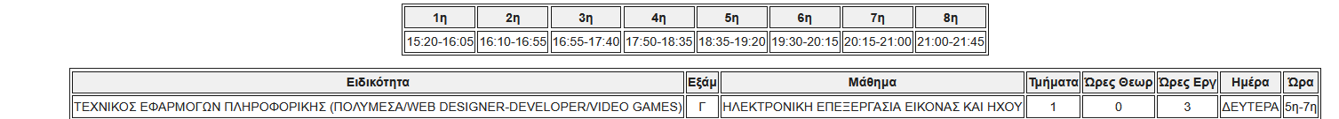 Ώρες μαθήματος/εβδομάδα (Θ, Ε, Σ): 0,2,2
