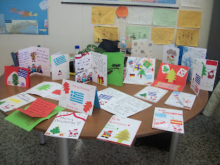 Η τάξη μας συμμετέχοντας στο ευρωπαϊκό πρόγραμμα e-twinning ετοιμάζει χριστουγεννιάτικες κάρτες για να στείλει σε 30 ευρωπαϊκά σχολεία, στην Αγγλία, Ιταλία, Πολωνία, Γερμανία, Φινλανδία, Ισπανία, Εσθονία κ.ά. Αντίστοιχα, τα σχολεία αυτά θα μας στείλουν τις δικές τους ευχετήριες κάρτες μέσα στο Δεκέμβριο.