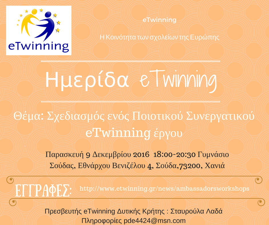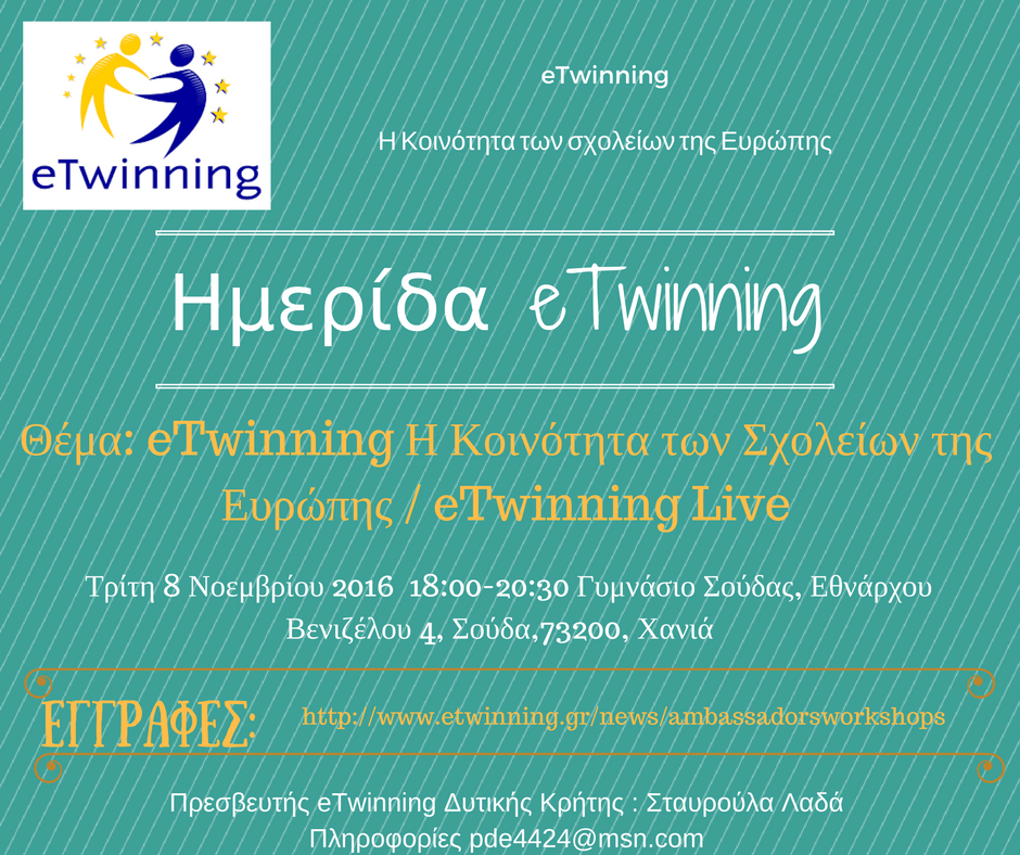 Ημερίδες eTwinning για εκπαιδευτικούς Πρωτοβάθμιας & Δευτεροβάθμιας Χανίων & Ρεθύμνης