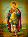 Στην εικόνα, ο Άγιος παριστανόταν σαν νεαρός στρατιώτης, κρατώντας στο δεξιό του χέρι σταυρό, πάνω στον όποιο υπήρχε λαμπάδα αναμμένη, γύρω δε από την εικόνα τα 12 μαρτύρια του.