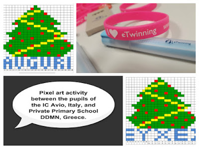 Επίσης, οι Ιταλοί μαθητές από το Avio, αποκωδικοποίησαν τις κάρτες που τους είχαμε φτιάξει με Pixel Art, και βρήκαν τη λέξη “ΕΥΧΕΣ”. Αντίστοιχα, εμείς είχαμε αποκωδικοποιήσει τις δικές τους κάρτες, που ελεγαν “AUGURI”: