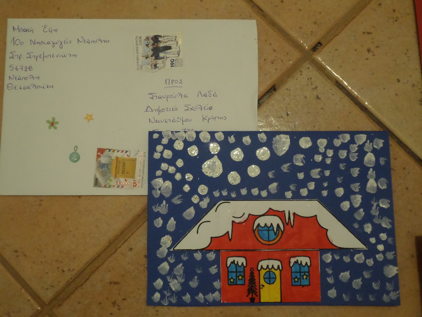 Οι χριστουγεννιάτικες κάρτες των μαθητών του Ε1 παρελήφθησαν από τους μαθητές του Δημοτικού σχολείο στο Rimini στην Ιταλία και τη δασκάλα τους, Stefania Altieri: