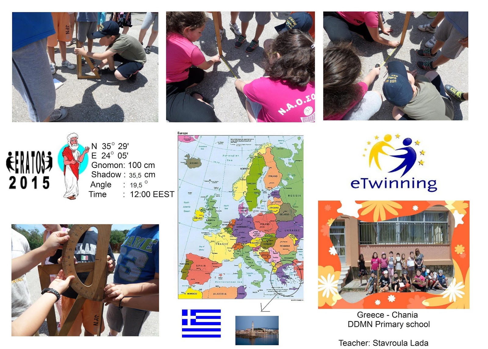 Τα τελευταία χρόνια πολλά σχολεία από όλον τον κόσμο πραγματοποιούν πειραματικές μετρήσεις που έχουν ως βάση το πείραμα του Ερατοσθένη. Πλέον, μαζί με αυτά τα σχολεία συμμετέχει και η τάξη μας, όπου οι μαθητές στις 12 η ώρα έκαναν τις πρώτες τους μετρήσεις.