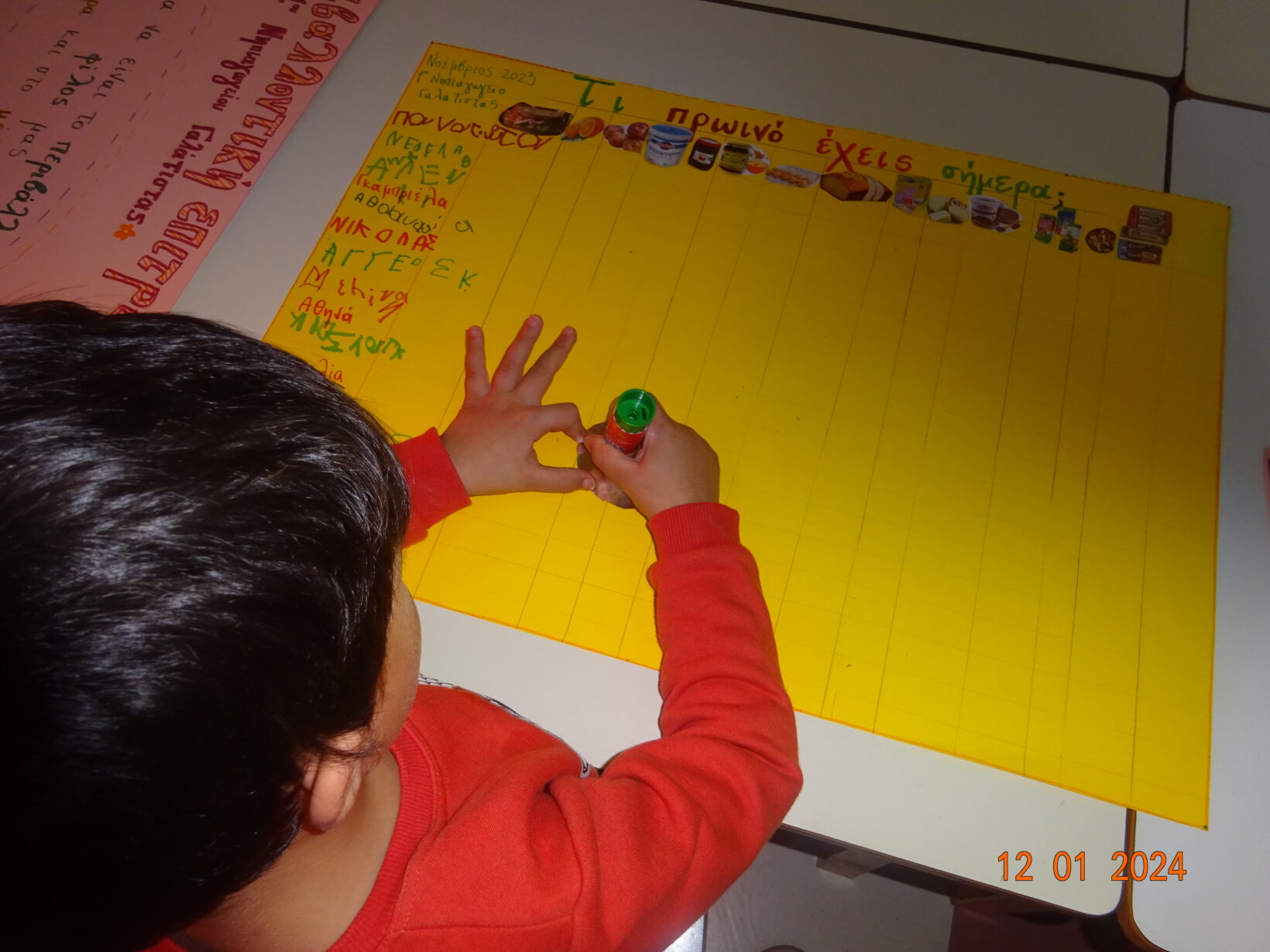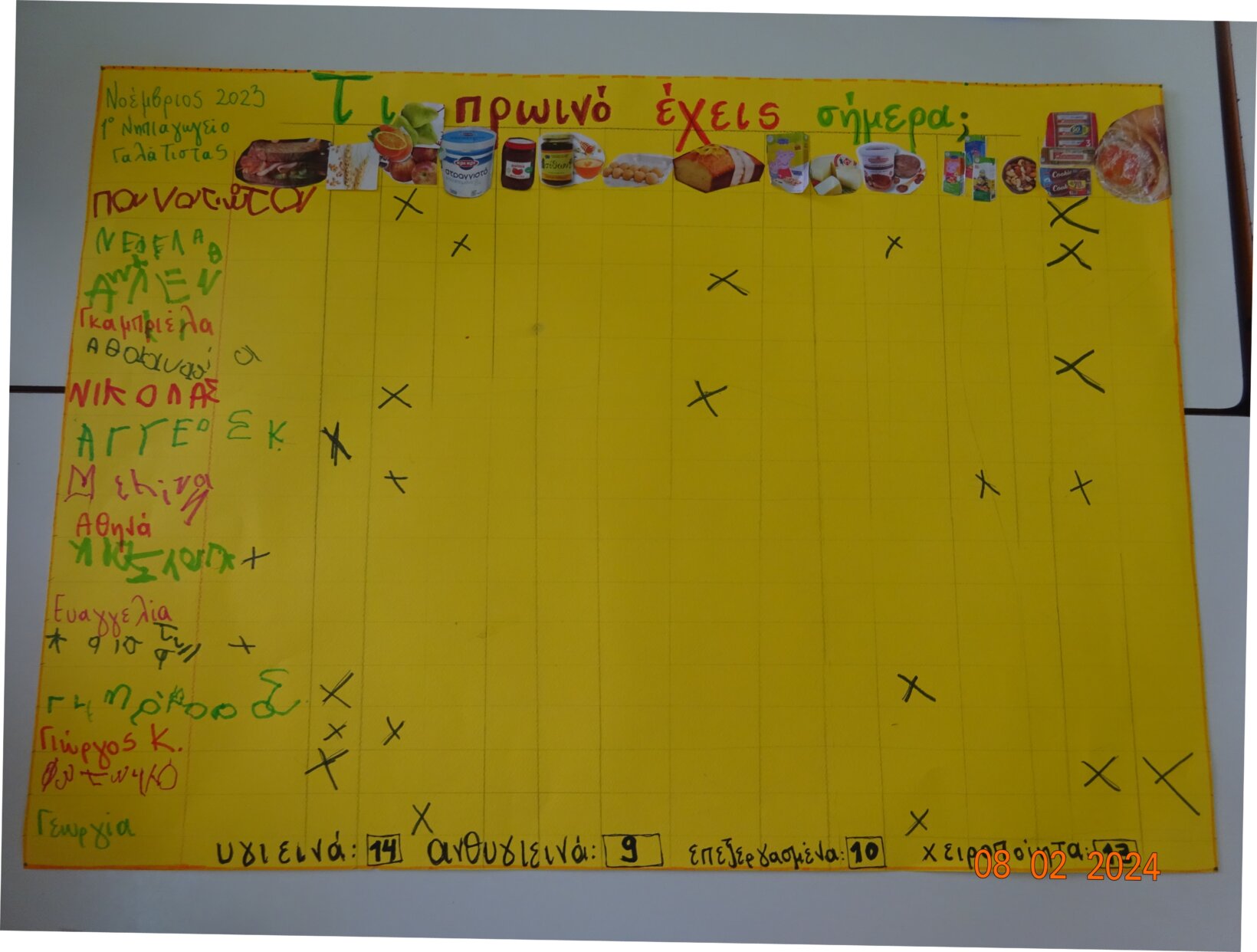 Τα παιδιά συνεργάστηκαν με τους γονείς και κατέγραψαν σε ημι-δομημένο ερωτηματολόγιο, ποιες ήταν οι διατροφικές συνήθειες ,στο πρωινό των παππούδων και γιαγιάδων και των γονέων των παιδιών.