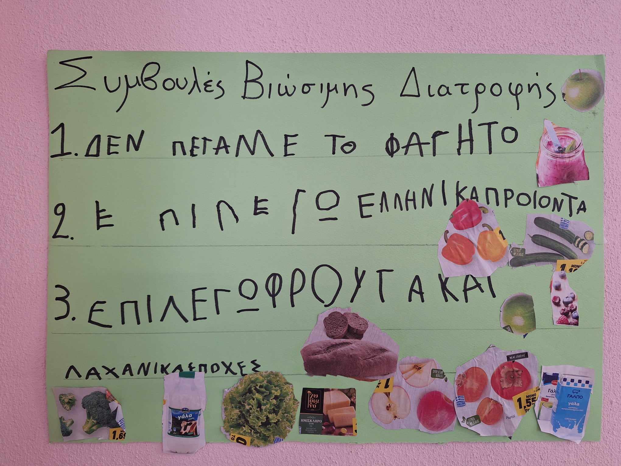 Σε αυτό μας βοήθησε και το βιβλίο ” Πέντε σωματοφύλακες κλεισμένοι στο ψυγείο” της Άννας Βερούλη και του Νίκου Μιχαλόπουλου, όπου γνωρίσαμε τις κατηγορίες τροφίμων και μας μύησε στις υγιεινές διατροφικές συνήθειες.