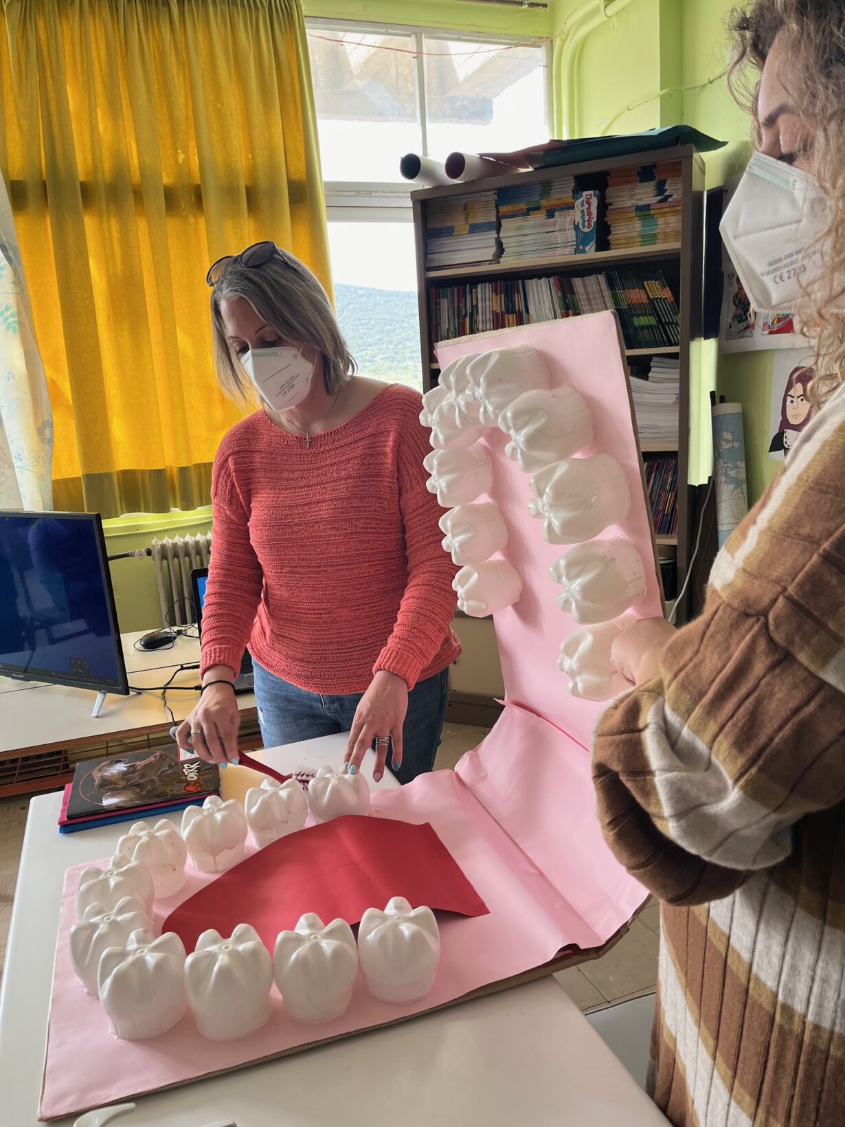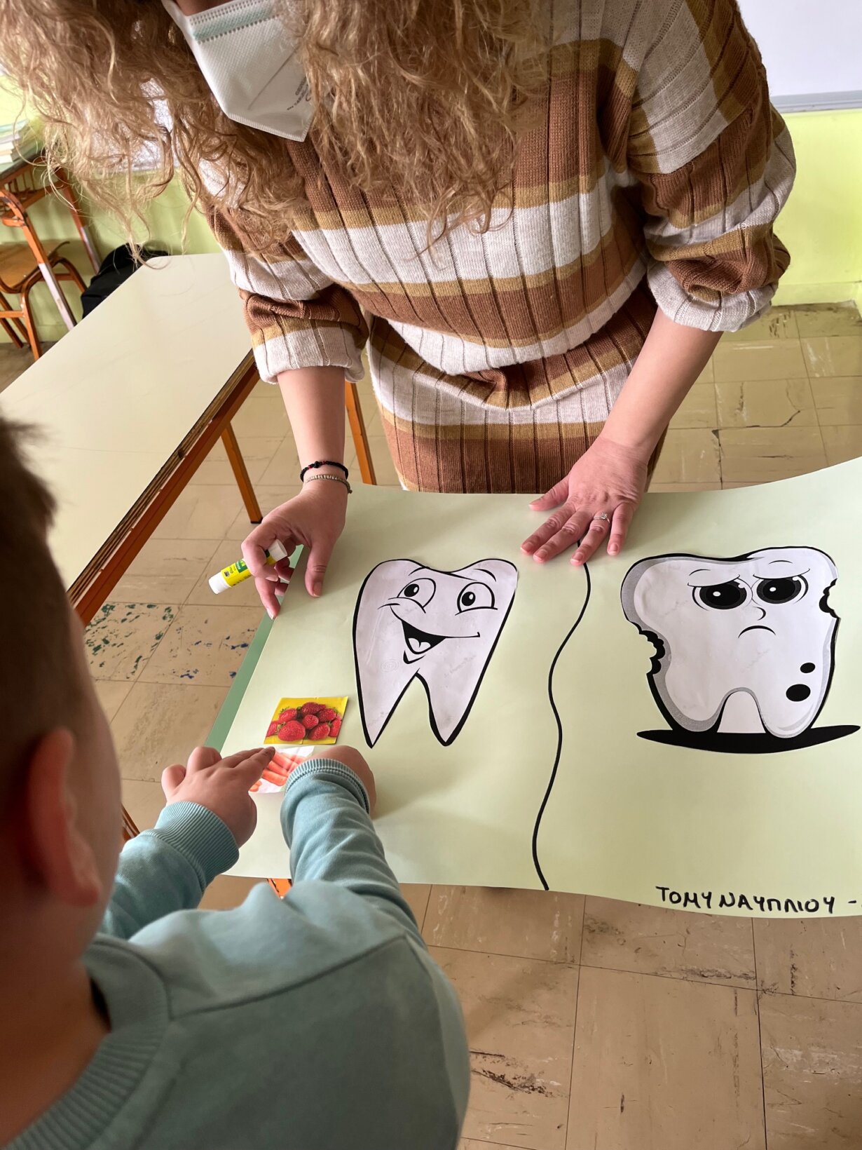 Τέλος στα πλαίσια της Δράσης συμμετείχαμε και στο εγκεκριμένο πρόγραμμα από το ΥΠΑΙΘΑ και τη ΔΠΕ Αργολίδας δράσης και παρέμβασης, ευαισθητοποίησης και ενημέρωσης, στο πλαίσιο αγωγής υγείας με θέμα: “Αγωγή Στοματικής Υγείας”, το οποίο πραγματοποιείται από την ΤΟΜΥ και το Κέντρο Υγείας Ναυπλίου. Το πρόγραμμα αυτό πραγματοποίησαν οι επισκέπτριες υγείας κ. Βαρδάκα Φωτεινή και κ. Στρούμπου Ευφροσύνη. Γνωρίσαμε από πιο κοντά το μαγικό κόσμο των δοντιών που χρειάζεται να προστατεύουμε για όλη μας τη ζωή. Μάθαμε τις ονομασίες τους και που χρησιμεύει η κάθε ομάδα δοντιών, παρατηρήσαμε και συγκρίναμε τα νεογιλά δόντια με αυτά που έχουμε μετέπειτα ως ενήλικες ως προς τον αριθμό και τις μεταβολές τους, γνωρίσαμε τους κύριους διατροφικούς εχθρούς των δοντιών και μάθαμε τρόπους να τους απωθούμε ώστε να μην μας καταστρέφουν τα μόνιμα δόντια μας, κατανοήσαμε την αναγκαιότητα της επίσκεψης στον οδοντίατρο 2 φορές τον χρόνο κ.α.