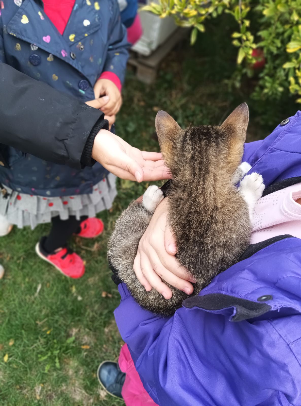 Επισκεφτήκαμε γειτονικό σπίτι που φροντίζει αδέσποτα γατάκια, τα πήραμε αγκαλιά, τα χαϊδέψαμε, μάθαμε τι χρειάζονται για την φροντίδα τους…