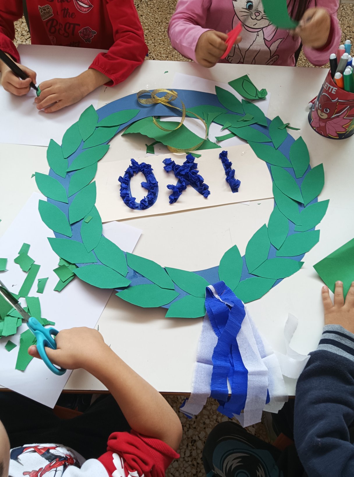 Με σχετικά βιβλία, εποπτικό υλικό, δραστηριότητες, τραγούδια, ζωγραφιές και κατασκευές, τα νήπια μαθαίνουν για την ιστορία της Ελλάδας, αναγνωρίζουν τη σημασία του «Όχι» και κατανοούν τις έννοιες της ειρήνης και της ελευθερίας. Στην τάξη μας, οι μικροί μας μαθητές έμαθαν για την ιστορία της 28ης Οκτωβρίου του 1940 και τη σημασία της μέσα από όμορφες και δημιουργικές δραστηριότητες.
