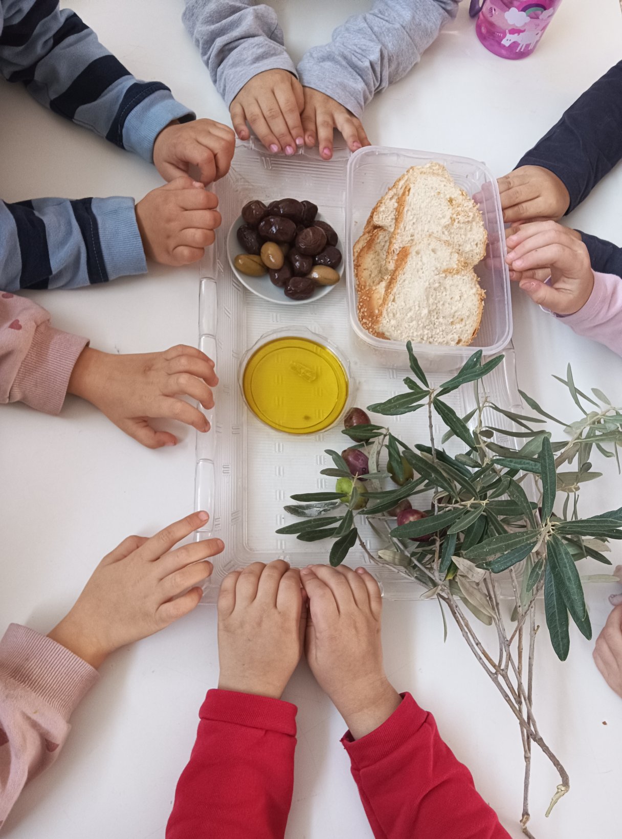 Είδαμε κλαδί ελιάς, δοκιμάσαμε ελιές και λάδι, τα πιάσαμε, τα μυρίσαμε
