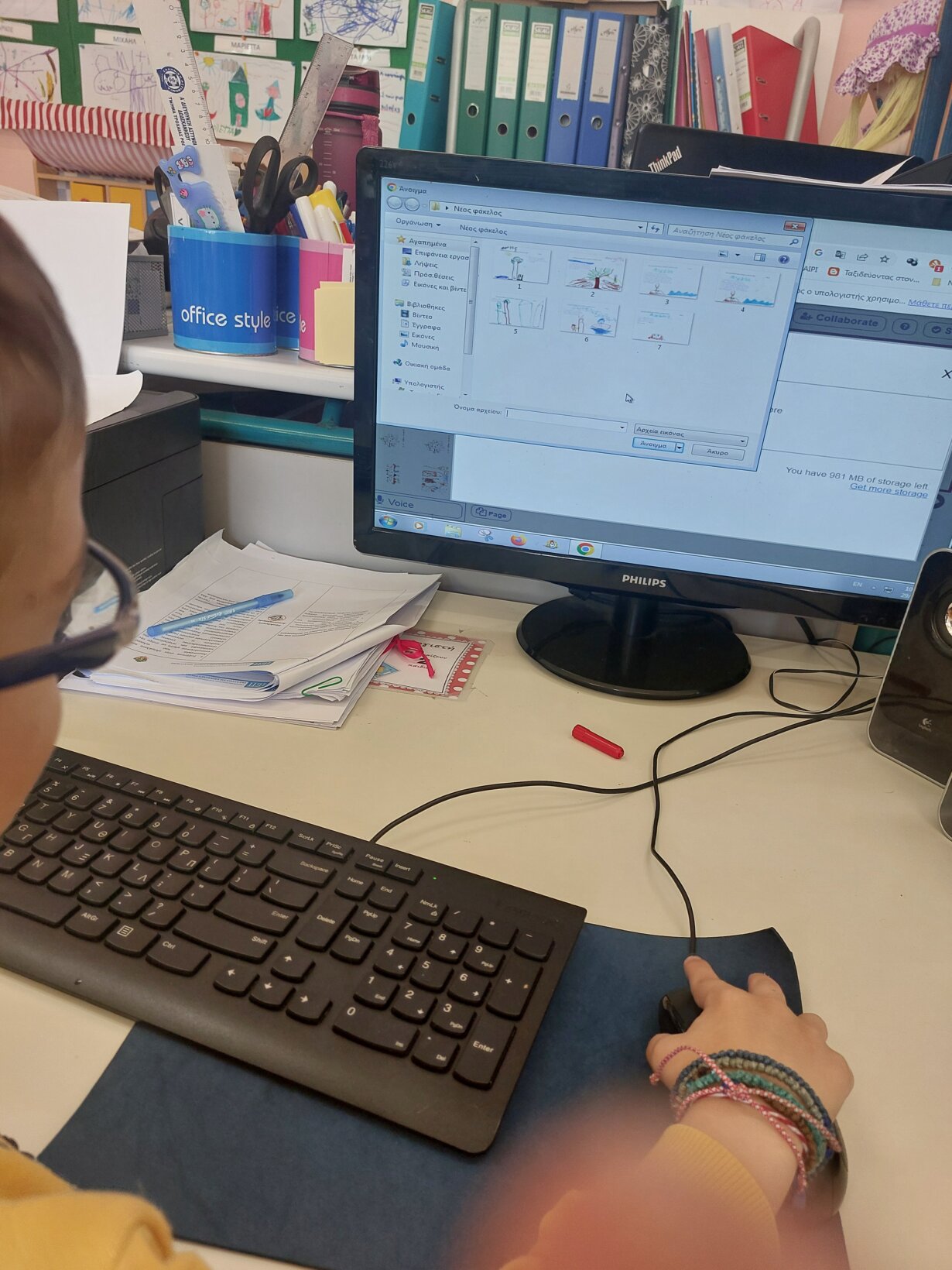 Στην συνέχεια τα παιδιά χωρισμένα σε δύο ομάδες, η μία στο φορητό υπολογιστή και η άλλη στο σταθερό υπολογιστή του σχολείου, αναζήτησαν στο διαδίκτυο εικόνες, η μία με φυλλοβόλα και η άλλη με αειθαλή δέντρα.