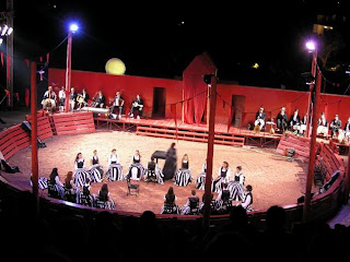H παράσταση ξεχωριστή και ενδιαφέρουσα (αν και το λουμπάγκο στα πέτρινα δεν το γλυτώσαμε….) και το Ok Coral πολύ εντυπωσιακό πρέπει να πω!!! Σβύσαμε και κεράκια (μπαρδόν, ήθελα να πω τα παίξαν οι προβολείς σε κάποια φάση και είχαμε τσάφα τσούφα, ωραία ήταν τα αναπάντεχα φωτορυθμικά, χοχο, αλλά πάθαν εγκεφαλικό οι ηλεκτρολόγοι) και μετά, βόλτες στην άδεια Ολυμπία μαζί με τους μισούς ηθοποιούς που ψάχναν σουβλάκια, γιατί ως γνωστόν, δεν πρέπει να πίνεις με άδειο στομάχι, αλλά και ήταν και κατάλληλη ώρα για πρωινό!! Γιατί, δεν φταίω εγώ, κύριε Πρόεδρε, που ο Σωτήρης στο Ζορμπά είχε πάλι jazz live….