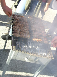 … μικροί και μεγάλοι, στο ψήσιμο…. σουβλάκια παντού….