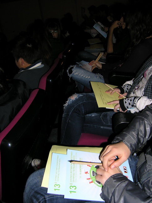 Παιδιά αμάθητα, που διψούν να μάθουν… Παιδιά, που κουβαλάνε μέσα τους την απαξίωση απέναντι στον πολιτισμό, των γονιών και της κοινωνίας τους.. που περάσανε τις πρώτες δύο μέρες μουρμουρίζοντας και χασκογελώντας στις προβολές, για να φτάσουν την τρίτη να μαλώνουν τους άλλους ώστε να μην ενοχλούνε, και να ρίξουν το πρώτο τους δάκρυ, στον πόνο του άλλου, να εκφράσουν την πρώτη τους σοβαρή άποψη, να εκτιμήσουνε, να απολαύσουνε, να μάθουνε να καταλαβαίνουν… Παιδιά που κλείσαν το κινητό τους και βγάλαν τα ακουστικά από τα αυτιά τους… Που στάθηκαν κατάματα απέναντι στην οθόνη, για να βρουν τον εαυτό τους πάνω της… Παιδιά, που για πρώτη φορά, μάθανε να βλέπουνε πραγματικά γύρω τους, με τα δικά τους μάτια…. Παιδιά, που η φωνή τους έγινε σιωπή για να ακούσουν την φωνή του διπλανού τους, και να φτιάξουν πια, τα δικά τους λόγια…