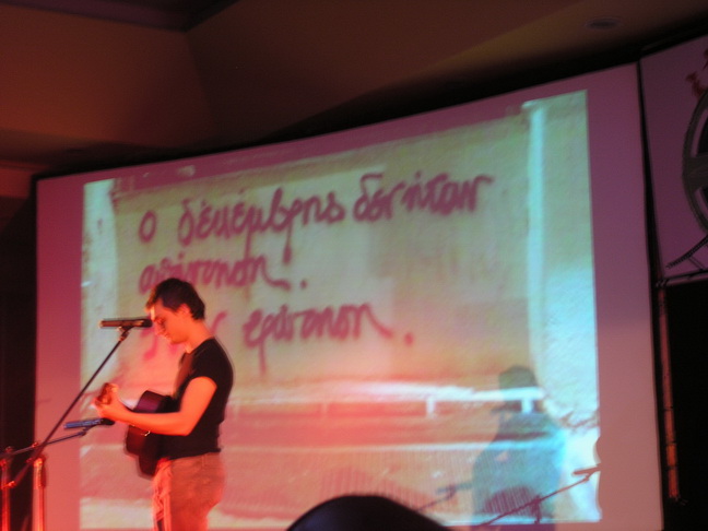 And the guy, with the skittery glance that will not look you in the eye, moves away, thinking of the next bought votes, people’s consciousness, (or lack of) for hire… Tit for tat…. And it’s a good thing to know, that at least, in one table, in the shade from the almost blazing sun, next to the bay, there is such a thing as ideology and respect in the everyday life of a generation, not yet altogether lost.