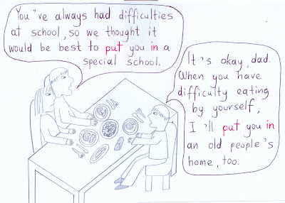 - Handicapped children are not put in special schools. They just need special ramps for their wheel chairs and they can attend regular schools like everyone else.