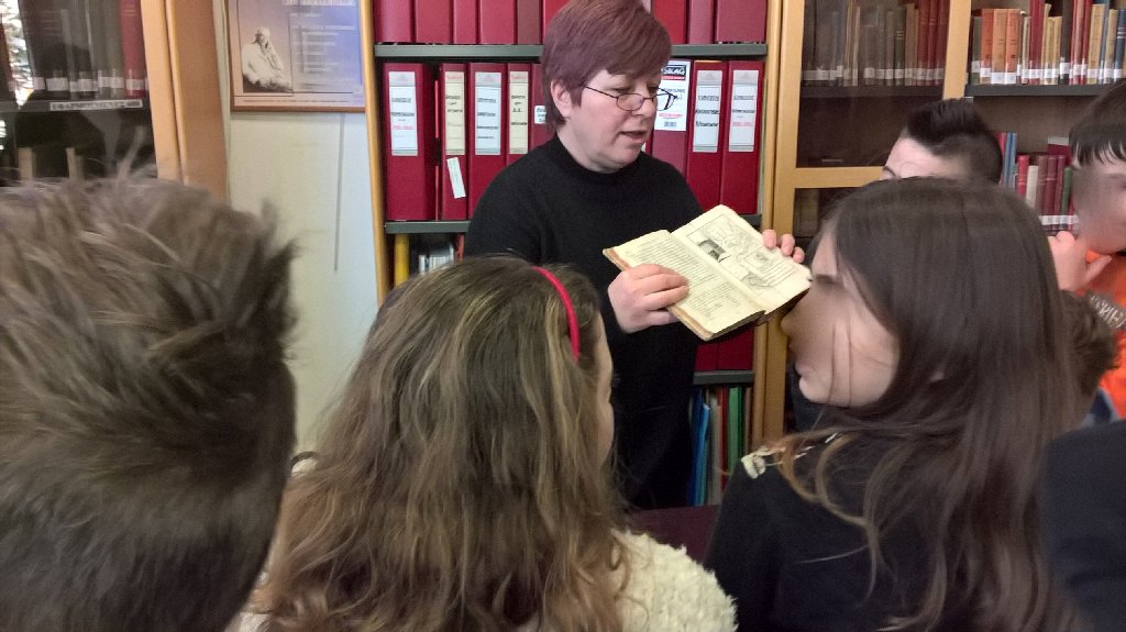 Η βιβλιοθηκάριος μας εξήγησε το σύστημα ταξινόμησης των βιβλίων, μας έδειξε τα παλαιότερα βιβλία της συλλογής της που φυλάσσονται με ιδιαίτερη προσοχή, το παιδικό τμήμα της και μας επιφύλαξε επίσης μια έκπληξη. Μια συνεργάτης της βιβλιοθήκης με προβλήματα όρασης μας περιέγραψε και μας διάβασε βιβλία γραμμένα με το σύστημα Braille. Η επίσκεψή μας, επίσης, μας έδωσε την ευκαιρία να εγγραφούμε στη βιβλιοθήκη και να γίνουμε μέλη της ώστε , όποτε θελήσουμε, να μπορούμε να εξερευνήσουμε τον κόσμο που μόνο τα βιβλία μπορούν να προσφέρουν.