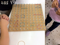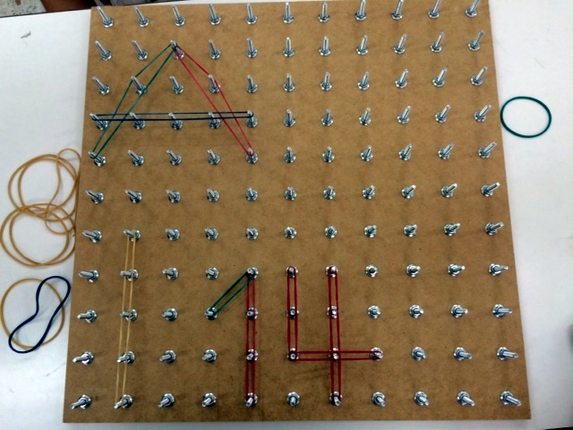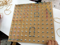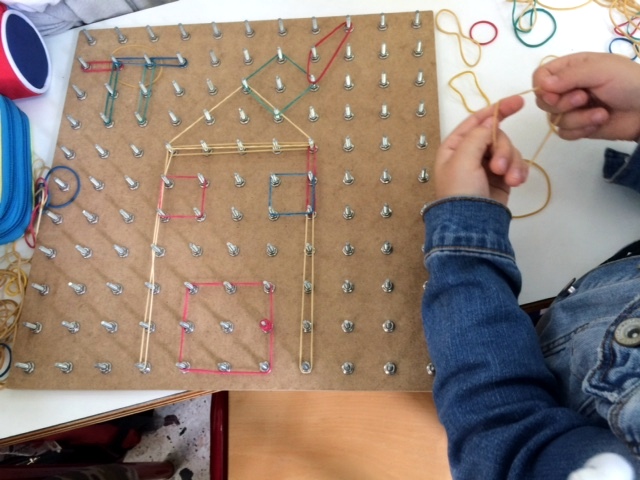 Θα έπρεπε να καταφέρουμε να φτιάξει η κάθε ομάδα διαφορετικά σχήματα με τα χρωματιστά λαστιχάκια που είχαμε.