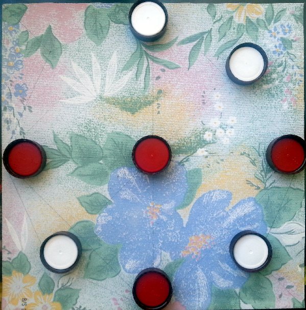 - Με τη σειρά και εναλλάξ κάθε παίκτης τοποθετεί όλες τις πέτρες του σε όποιον κενό κύκλο θέλει.