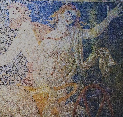 Οδηγός ήταν ο Πλούτωνας, που με το ένα χέρι κρατούσε τα χαλινάρια των αλόγων και με το άλλο άρπαξε την πανέμορφη κοπέλα. Οι κραυγές της δεν ακούστηκαν από κανένα και η Περσεφόνη κατέβηκε στον Κάτω Κόσμο….