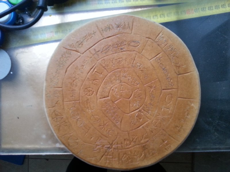 | Η μια από τις δύο όψεις του Δίσκου της Φαιστού |