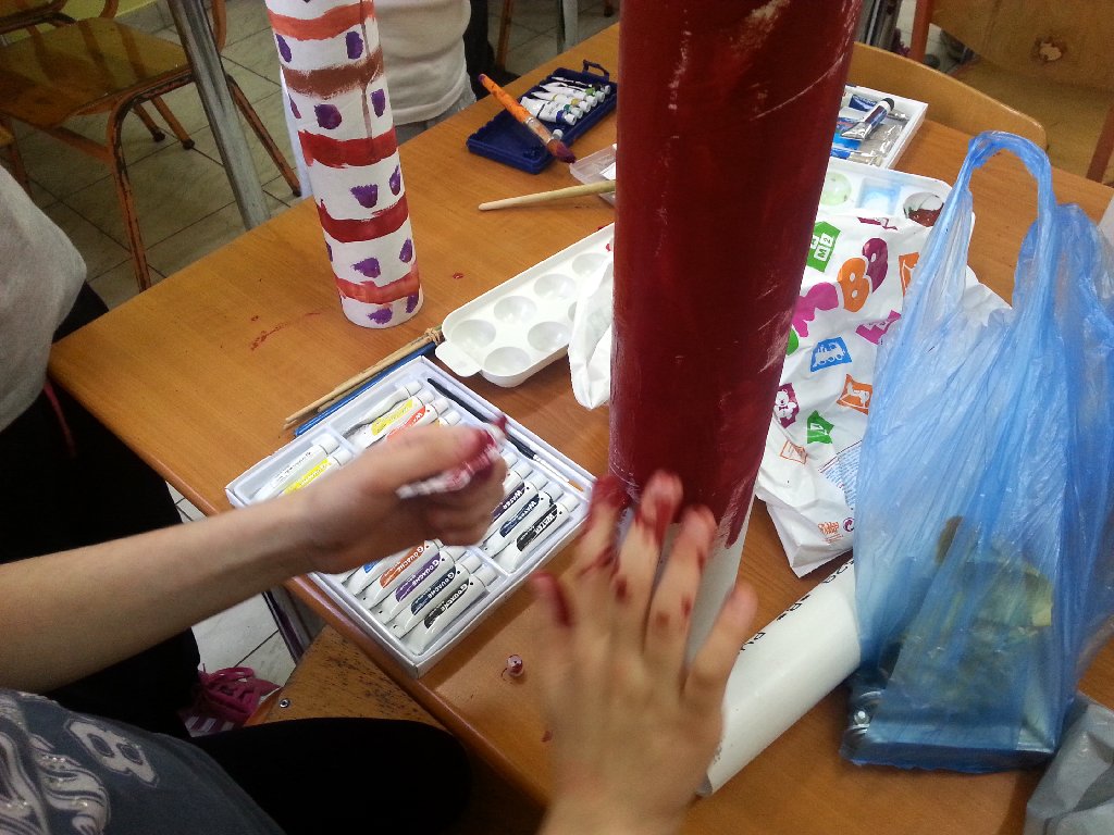 | Κάθε τραπέζι είχε τρεις κυλίνδρους, γωνίες για βάση και κομμάτια pvc για τις ενώσεις των κυλίνδρων |