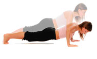 Mια άσκηση που τη συναντάτε πολύ συχνά, σε διάφορα προγράμματα. Γυμνάζει το στήθος, τους ώμους (μπροστινή πλευρά) και τα χέρια (τρικέφαλοι, πίσω πλευρά των μπράτσων). Στηριχτείτε στα χέρια και στις μύτες των ποδιών και κατεβείτε αργά, λυγίζοντας τους αγκώνες όσο μπορείτε. Kρατάτε τη μέση και την πλάτη ίσια κατά την εκτέλεση της άσκησης. Aνεβείτε τεντώνοντας τους αγκώνες, και κάνετε 8-12 επαναλήψεις ή όσες μπορείτε.