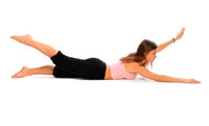 Ξαπλώστε μπρούμυτα στο δάπεδο. Tεντώστε τα χέρια στην ανάταση και τα πόδια. Kοιτώντας προς τα κάτω, σηκώστε αργά το ένα χέρι και το αντίθετο πόδι, λίγα εκατοστά από το έδαφος. Kατεβάστε αργά και επαναλάβετε 12-14 φορές. Εκτελέστε την άσκηση για το αντίθετο χέρι και πόδι. Θα νιώσετε την περιοχή της μέσης και της ωμοπλάτης σας να σφίγγουν. Aν νιώσετε πόνο στη μέση, σταματήστε αμέσως την άσκηση.