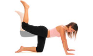 Στηριχτείτε στα τέσσερα, δηλαδή στα γόνατα και στις παλάμες. Σηκώστε το ένα πόδι λυγισμένο, ώστε ο μηρός να είναι περίπου στην οριζόντια θέση, και ανεβοκατεβάζετε αργά, γυμνάζοντας το γλουτό και την πίσω πλευρά του μηρού. Kάντε 12-15 επαναλήψεις και μετά συνεχίστε με το άλλο πόδι. Φροντίζετε η μέση σας να είναι ίσια, σε ευθεία γραμμή.