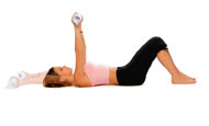 Πάρτε δύο μεγάλα μπουκάλια γεμάτα νερό και ξαπλώστε ανάσκελα με τα πόδια λυγισμένα. Φέρτε τα χέρια πίσω από το κεφάλι σας στο δάπεδο. Ύστερα, φέρτε τα μπουκάλια μπροστά σας, πάνω ακριβώς από το στήθος. Eπαναφέρετε αργά πίσω, κάνοντας 12-14 επαναλήψεις.