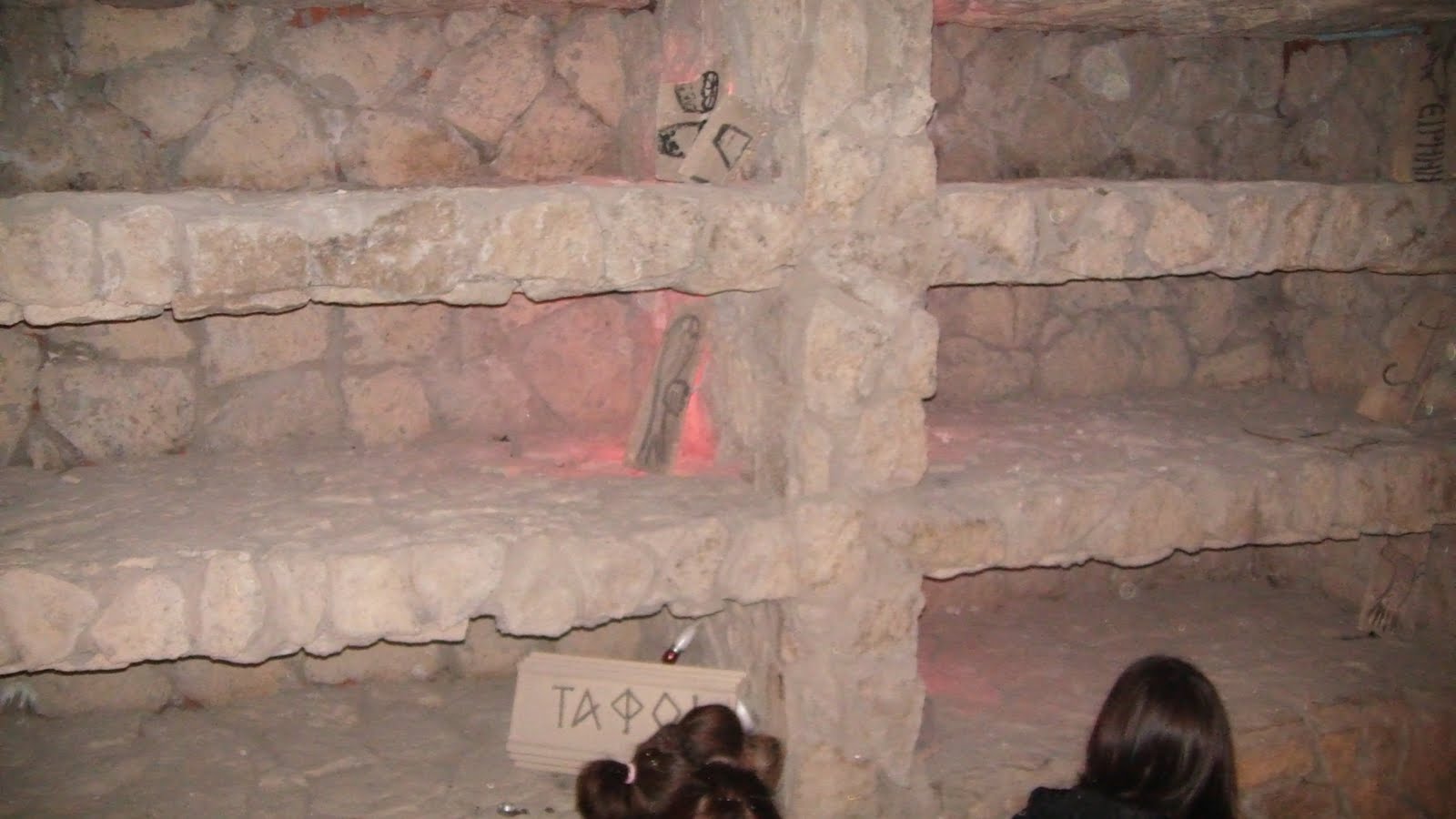 Στο Μοναστήρι αυτό, όπου μονάζουν 16 μοναχές, υπάρχει αναπαράσταση κατακομβών με λαξευμένους τάφους, κρύπτες , συμβολικές απεικονίσεις. Ήταν μια πολύ όμορφη εμπειρία για τα παιδιά γιατί μπόρεσαν από κοντά να γνωρίσουν πώς ήταν οι κατακόμβες, να συνομιλήσουν με τις μοναχές, να διατυπώσουν ερωτήματα γύρω από το μοναχισμό ( εγκράτεια, κλήση του μοναχού, έσοδα μονής, επιβίωση) και να συναισθανθούν έστω και λίγο από τη Θεία Χάρη και την πνευματικότητα του χώρου.