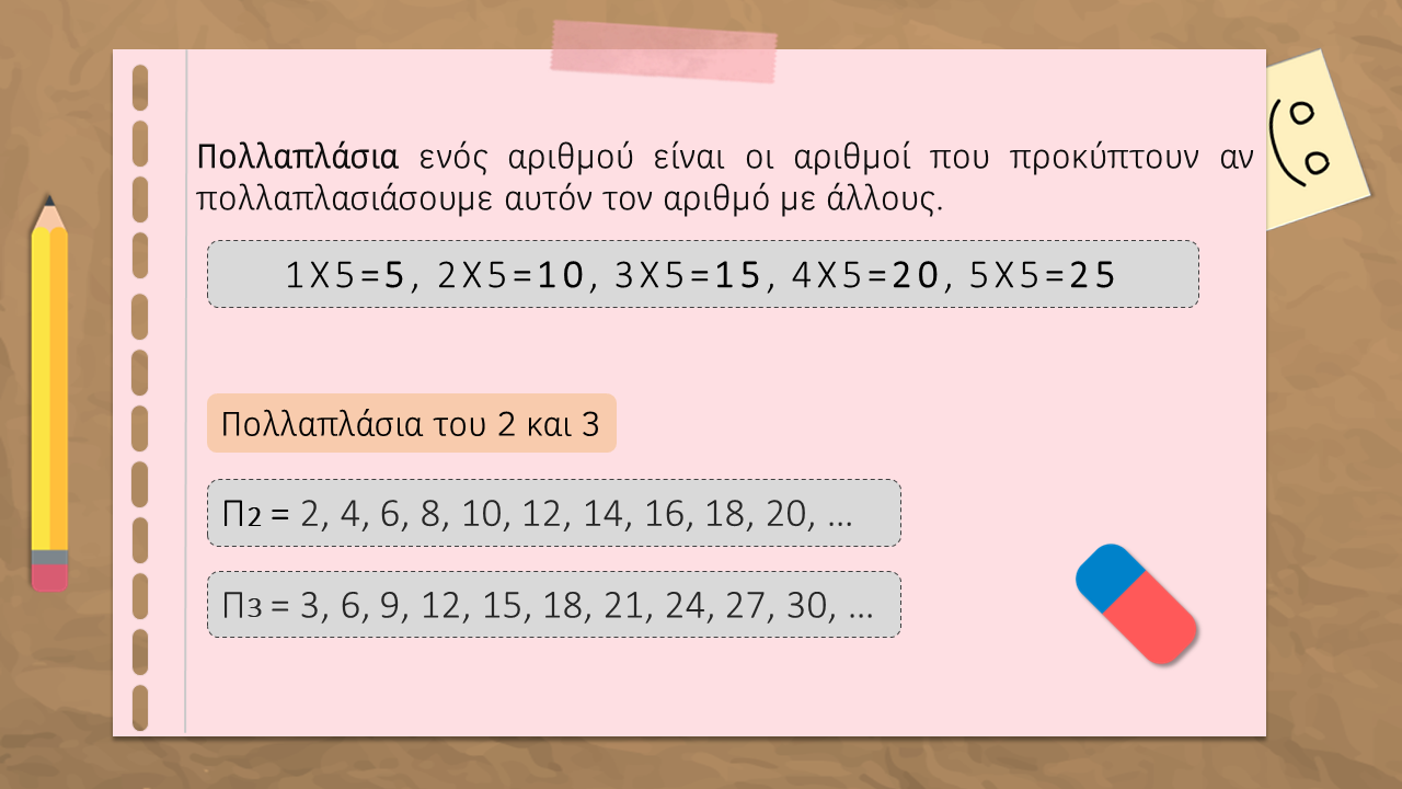 Εργασία 2 σελ. 99 (συμπληρώνω τα πολλαπλάσια του 25 και έπειτα κάνω και την κόκκινη βούλα). Τετράδιο εργασιών: Ασκήσεις 1, 3 και 4 σελ. 34-35. Η παρακάτω εικόνα είναι βοηθητική για το τι σημαίνει πολλαπλάσιο: