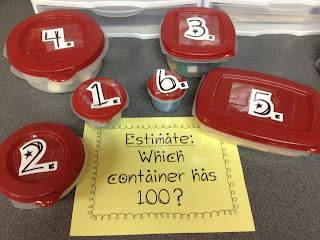Τα αρίθμησα και έβαλα μέσα σε διπλωμένο χαρτόνι τον αριθμό 100 και στο ένα το 80. Τα έβαλα στη σειρά και για το καθένα κάναμε υποθέσεις αν έχει 100 ή όχι. Δεν τους είχα πει αν υπάρχουν λιγότερα αλλά τους είπα ότι σίγουρα δεν υπάρχουν πάνω από 100.