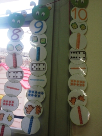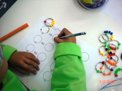 Μια δική μου ιδέα με αφορμή από εδώ: έφτιαξα τους κρίκους της πρόσθεσης ανάλογα με το χρώμα των χαντρών π.χ. 3 πράσινες και 3 κίτρινες ίσον όλες μαζί 6. Έφτιαξα και το παρακάτω φύλλο για να το παίρνει όποιος θέλει να κάνει τη δραστηριότητα.