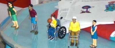 •  Αφού συζήτησαν για λίγο η κ. Αντωνία μας είχε μία έκπληξη. Είχε φέρει πλαστικές φιγούρες με ΑμΕΑ.  Τα μικρά ξετρελάθηκαν. Οι φιγούρες λειτούργησαν ως αφορμή για συζήτηση και σχολιασμό όσον αφορά τις δυνατότητες, τη δική μας στάση αλλά και την προσβασιμότητα του σχολείου μας.