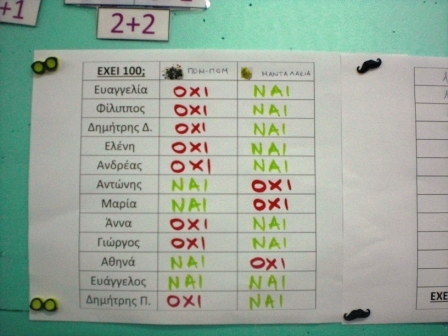 Έπειτα συμπληρώσαμε τα γραφήματα των εκτιμήσεων-υπολογισμών. Οφείλω να ομολογήσω πως τα νήπια δεν μπόρεσα να τα “ξεγελάσω”. Πολύ το χάρηκα που τα βρήκανε. Τους άρεσε τόσο που μου ζήτησαν να το κάνουμε και άλλη μέρα. Εννοείται πως θα εισακουσθούν!