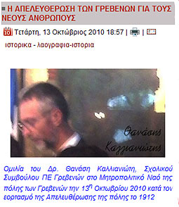 Ομιλία μου χτες 19.10.2012 στο Πνευματικό Κέντρο Βελβεντού τη συνοδεία οπτικής παρουσίασης με τίτλο “Η απελευθέρωση του 1912 στο Βελβεντό”. Ώρα 8 βράδυ, προσκαλεσμένος από το ΜΟΒ της κωμόπολης