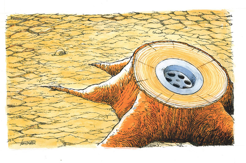 Ένα ηλιόλουστο πρωινό, καθώς περπατούσε ανάμεσα στα ψηλά δέντρα, παρατήρησε κάτι διαφορετικό. Πολλά φύλλα ήταν κιτρινισμένα, το ρυάκι που άλλοτε κελαρυστά έτρεχε, τώρα ήταν σχεδόν στεγνό, και τα πουλιά δεν κελαηδούσαν τόσο χαρούμενα όσο συνήθως. Ο Αριστοτέλης ένιωσε μια σφιχτή μπάλα στο στομάχι του. “Τι συμβαίνει στο δάσος μου;” σκέφτηκε με αγωνία.