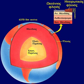 Η Γη αποτελείται από τρία διαφορετικά στρώματα το φλοιό, το μανδύα και τον πυρήνα, συνολικού πάχους 6.370km περίπου.