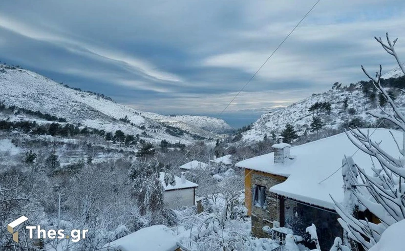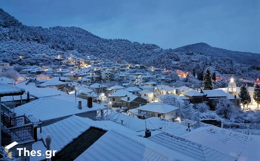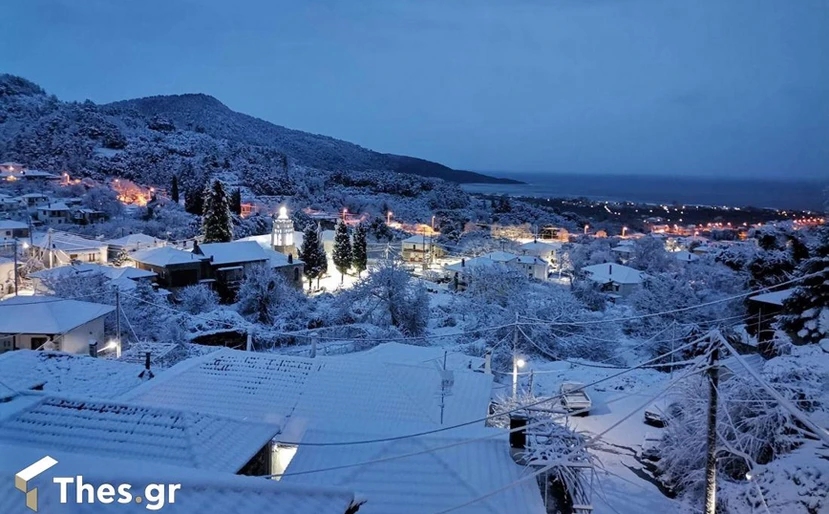 Μαγικές εικόνες από τα χιονισμένα χωριά της Θάσου… Ντυμένα στα λευκά τα ορεινά του νησιού