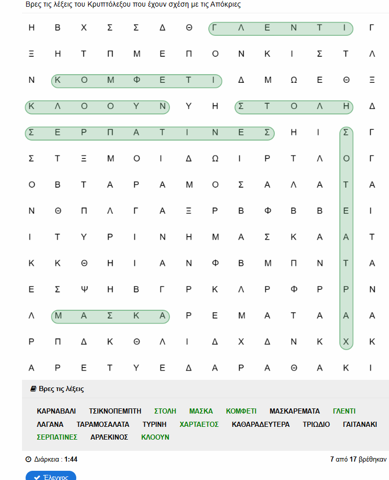 17. Κρυπτόλεξο Αποκριές