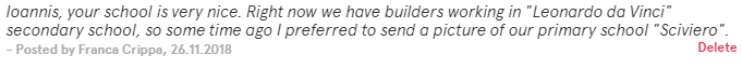 Φέτος πρόκειται να συνεργαστούμε με πάρα πολλά σχολεία της Ευρώπης: Δείτε παρακάτω τα σχολεία με τα οποία πρόκειται να συνεργαστούμε. Ο κατάλογος των σχολείων είναι δυνατόν να μεγαλώσει!