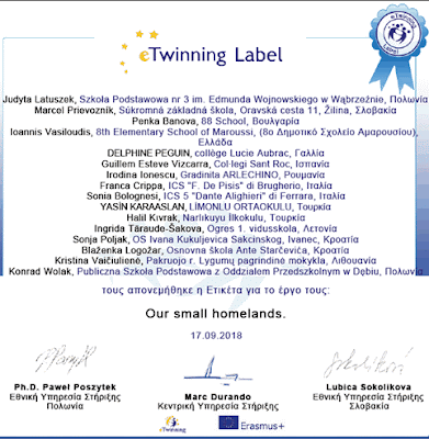 Το τμήμα μας θα συνεργαστεί με άλλα σχολεία από την Ευρώπη σε ένα ευρωπαϊκό πρόγραμμα eTwinning με τίτλο: Our small homelands.